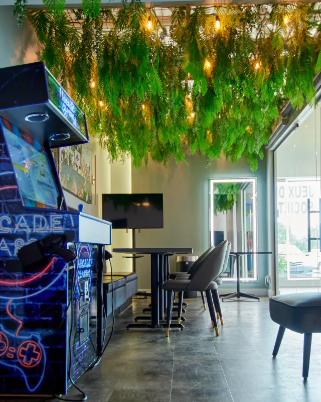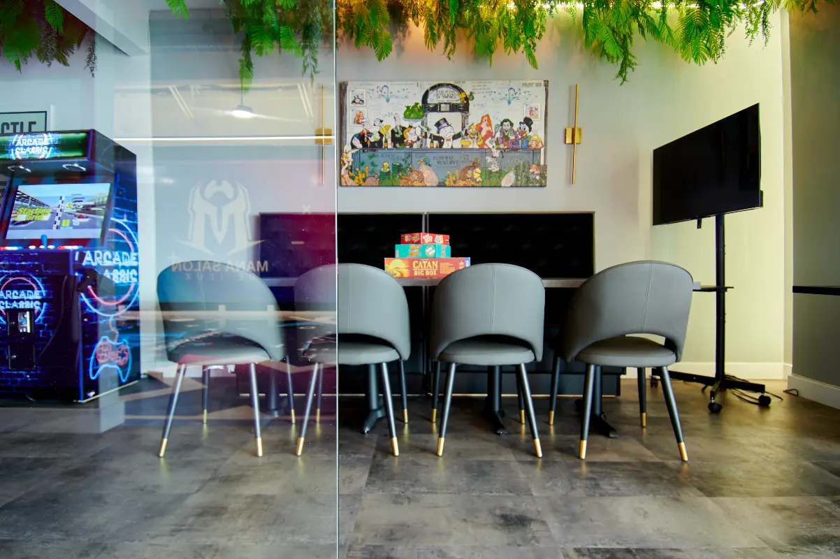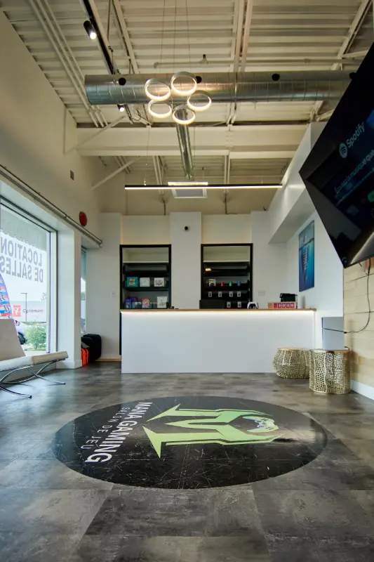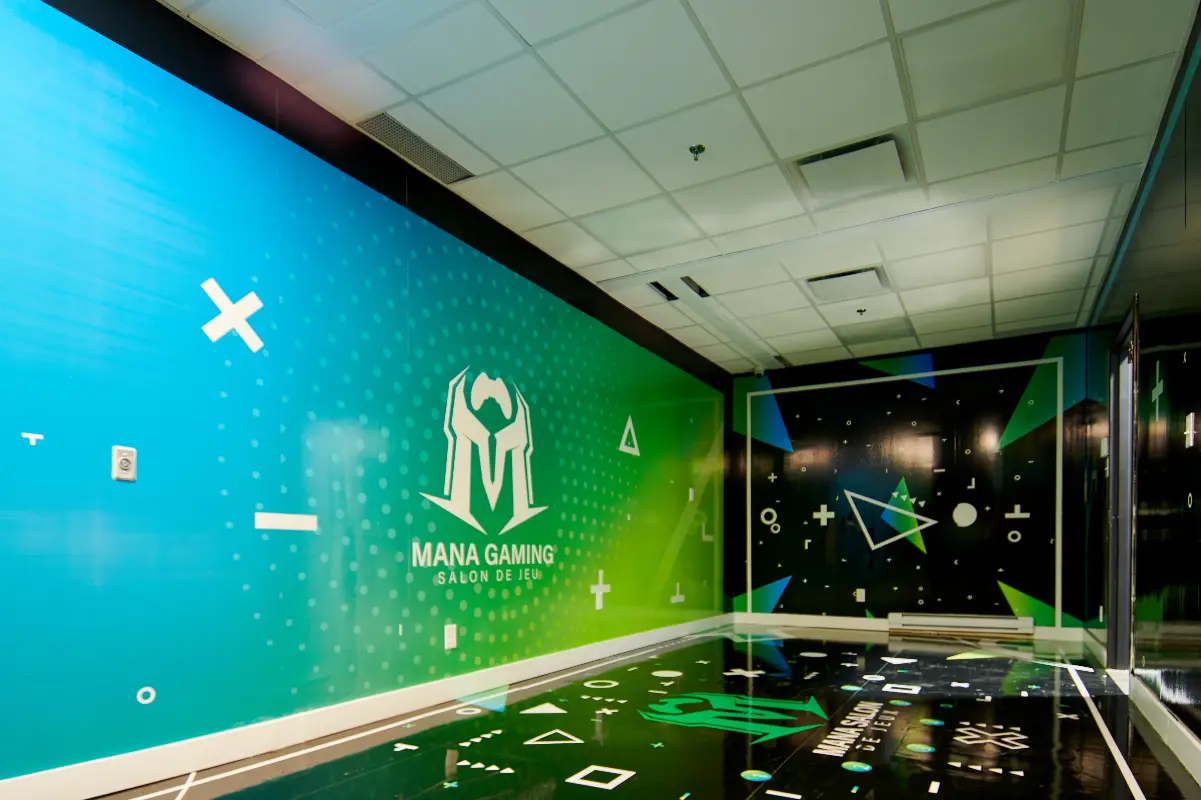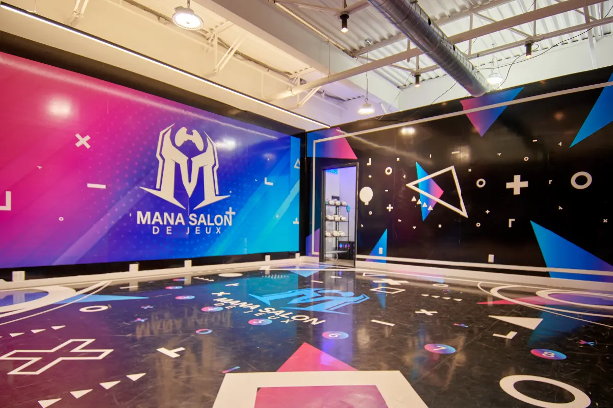 - Des salles de réalité virtuelle conçues aux couleurs et formes du logo ManaGaming, pour une immersion complète dès l’entrée.